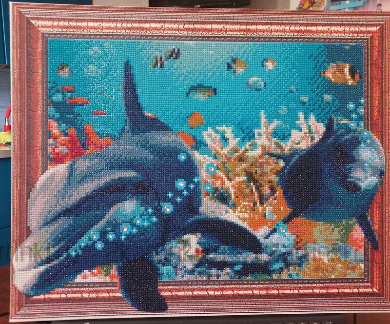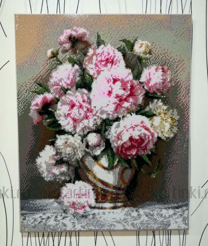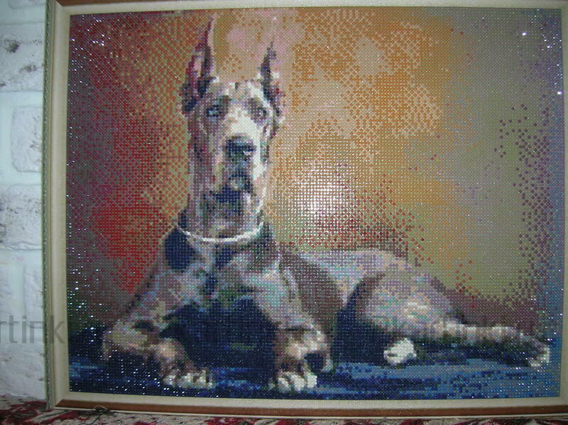 Дополнение: картины из этой серии 30*30 см с рамкой получаются восхитительные: яркие, блестящие, украсят любой интерьер, а рамка в мозаике сама по себе хороша, не надо ничего дополнительно.