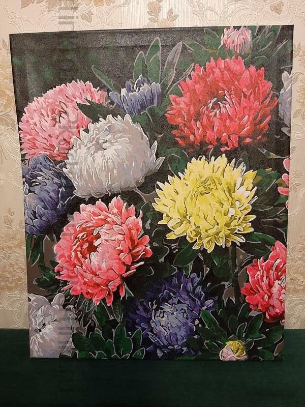 Холст, краски-все отлично. Картина получается как и показана на сайте.