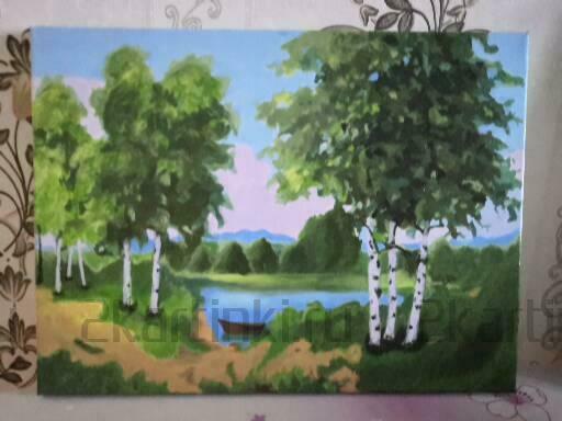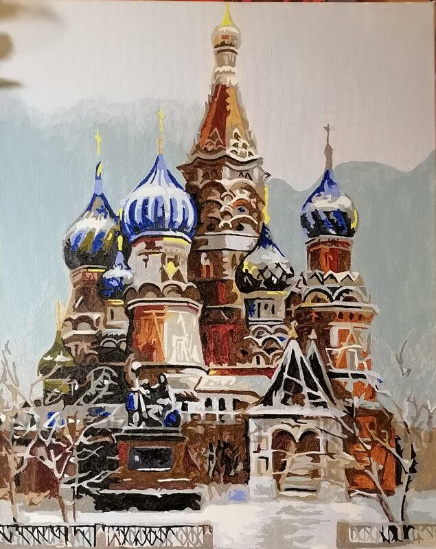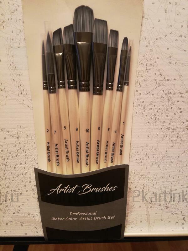 Теперь о красках – половина из них похожа на акварель, т.к. совершенно прозрачная, приходилось закрашивать по два – три раза, что бы добиться эффекта акриловой краски или применять технику импасто. Небо раскрашивал своими красками, т.к. если бы раскрашивал красками из набора, оно получилось бы пасмурным, а на картине явно солнечный день. 13 , 16 и 1 , 22 номера красок одинаковые, разницу наверное можно определить только по спектральному анализу. Справедливости ради, одна треть красок очень хорошего качества. Кисти стандартные, не хуже, чем в других наборах. Я писал производителю «Новый мир» о своих замечаниях, они сказали, что много подделок.