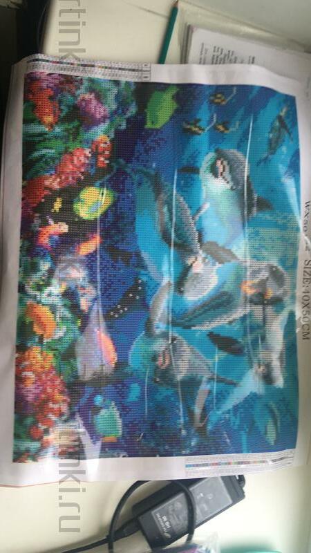 В этот же день приступила к работы. Начала с алмазной вышивки) К сожалению, свинья подвела: в наборе не хватило страз одного цвета, очень много не хватает( Теперь занимаюсь картиной, пока все хорошо!