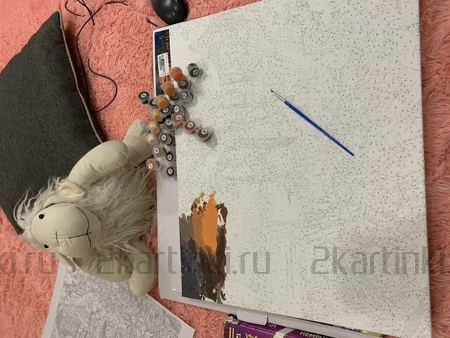 Что касается самой картины. Качество хорошее. Стразы уже упакованы в слип-пакеты. Начала делать, на прикрепленной картинке уже есть частичная выкладка стразами.
