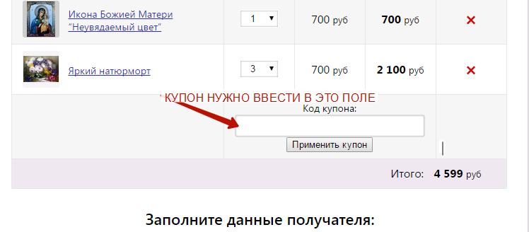 Купон вводится на странице оформления заказа