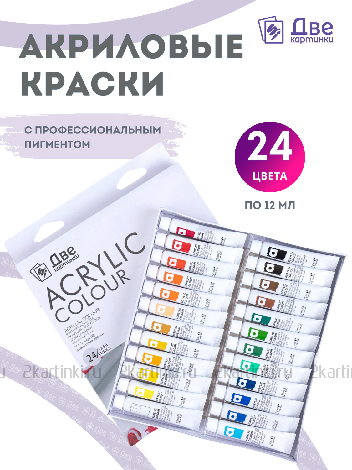 Художественный материал «Акриловые краски «Две картинки» 24 шт. по 12 мл, проф. пигмент»