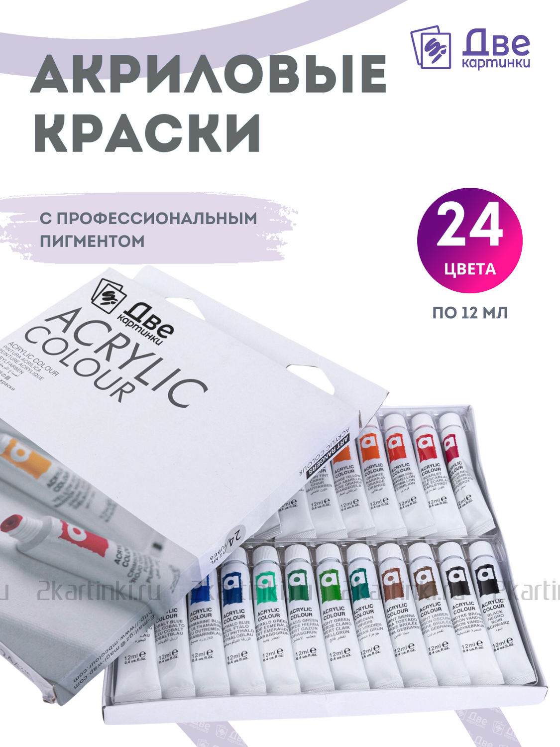 Художественный материал «Акриловые краски «Две картинки» 24 шт. по 12 мл, проф. пигмент» размером см. купить по выгодной цене 970 ₽ с доставкой по Москве и всей России.
