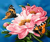 Алмазная вышивка «Бабочки собирают нектар с лепестков пионов» 40x50 см