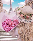 Картина по номерам «Белокурая девушка с букетом пионов в Париже» 40x50 см