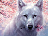 Картина по номерам «Белый волк с веткой цветущей сакуры» 40x50 см