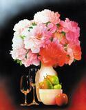Алмазная вышивка «Букет пионов, фрукты и бокалы» 40x50 см