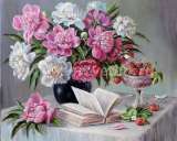 Картина по номерам «Букет пионов, книга и земляника» 40x50 см