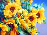 Алмазная вышивка «Букет подсолнухов на голубом фоне» 40x50 см