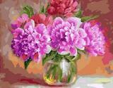 Картина по номерам «Букет цветущих пионов в прозрачной вазе» 40x50 см