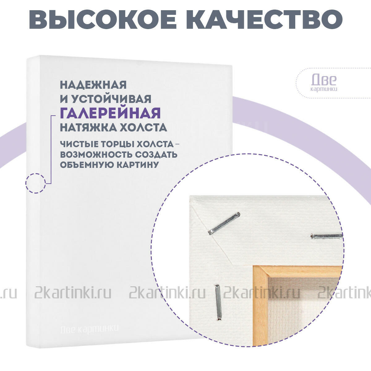 Холст натянут методом боковой натяжки на деревянный подрамник в жестком сборе. Материал холста 100% хлопок. Грунтовка акриловая 280 грамм на метр квадратный. Подрамник из дерева сосны высшего сорта. Холст на подрамнике подходит для акриловой живописи.