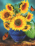 Алмазная вышивка «Букет декоративных подсолнухов и бабочки» 40x50 см