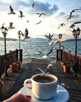 Алмазная мозаика 40x50 Кофе с видом на чаек