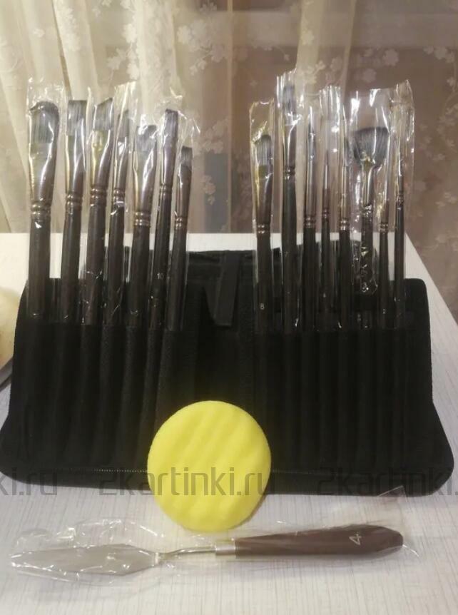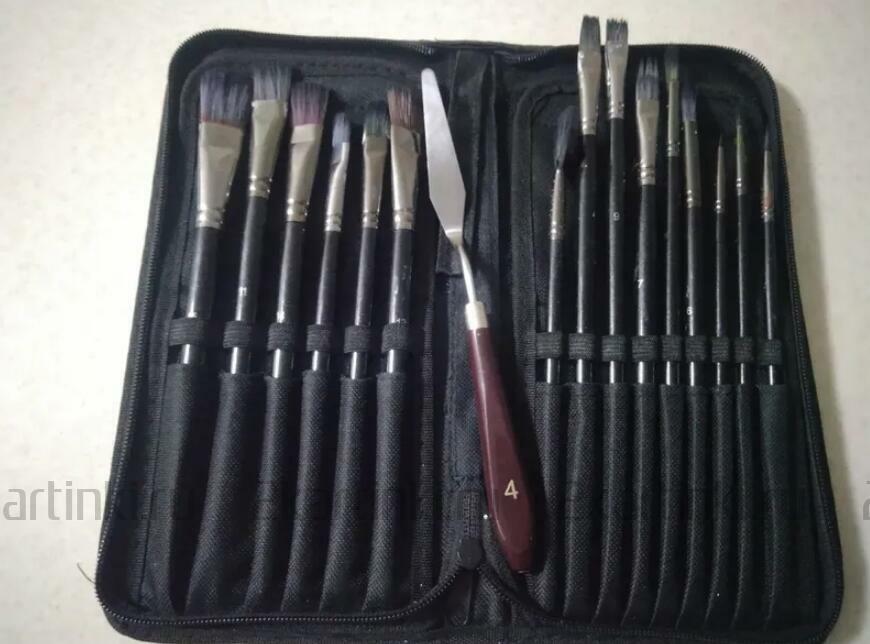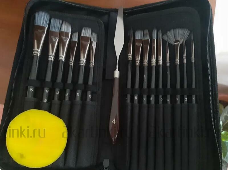 отличный набор. пользуюсь уже около полугода, никаких нареканий. большое количество разных кистей плюс бонусом ещё и мастихин. удобный чехол для переноски