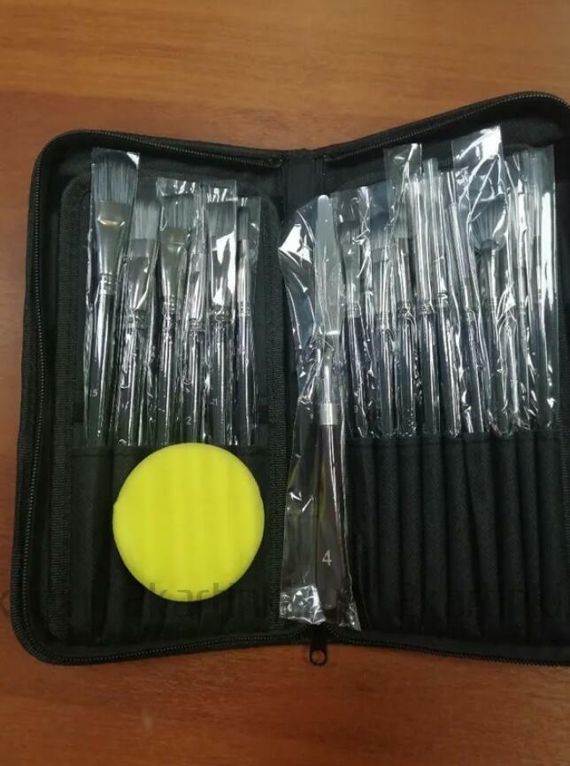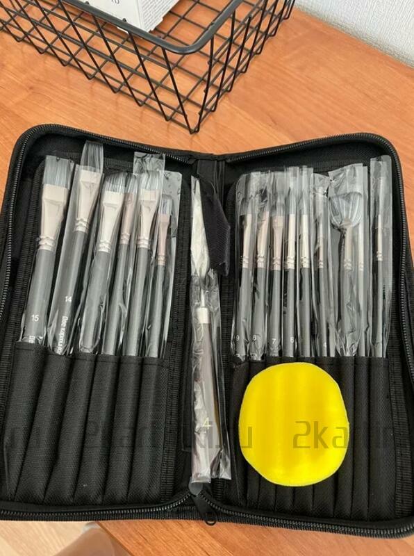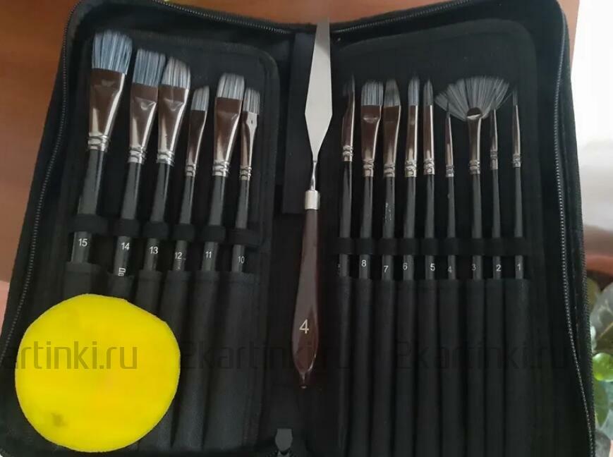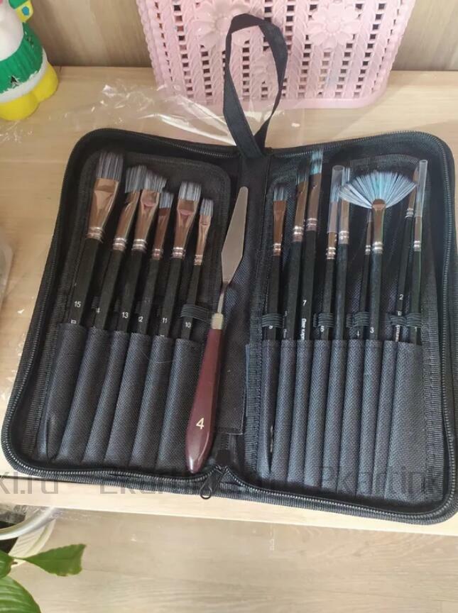 Оптом «Коробка 50 шт.: Набор кистей для рисования в чехле, премиум набор (15 нейлоновых кистей, 1 мастихин)» размером 4x29x15 см см. купить по выгодной цене 750 ₽ с доставкой по Москве и всей России.