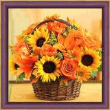 Алмазная вышивка «Корзина с лилиями, подсолнухами, хризантемами и розами» 30x30 см