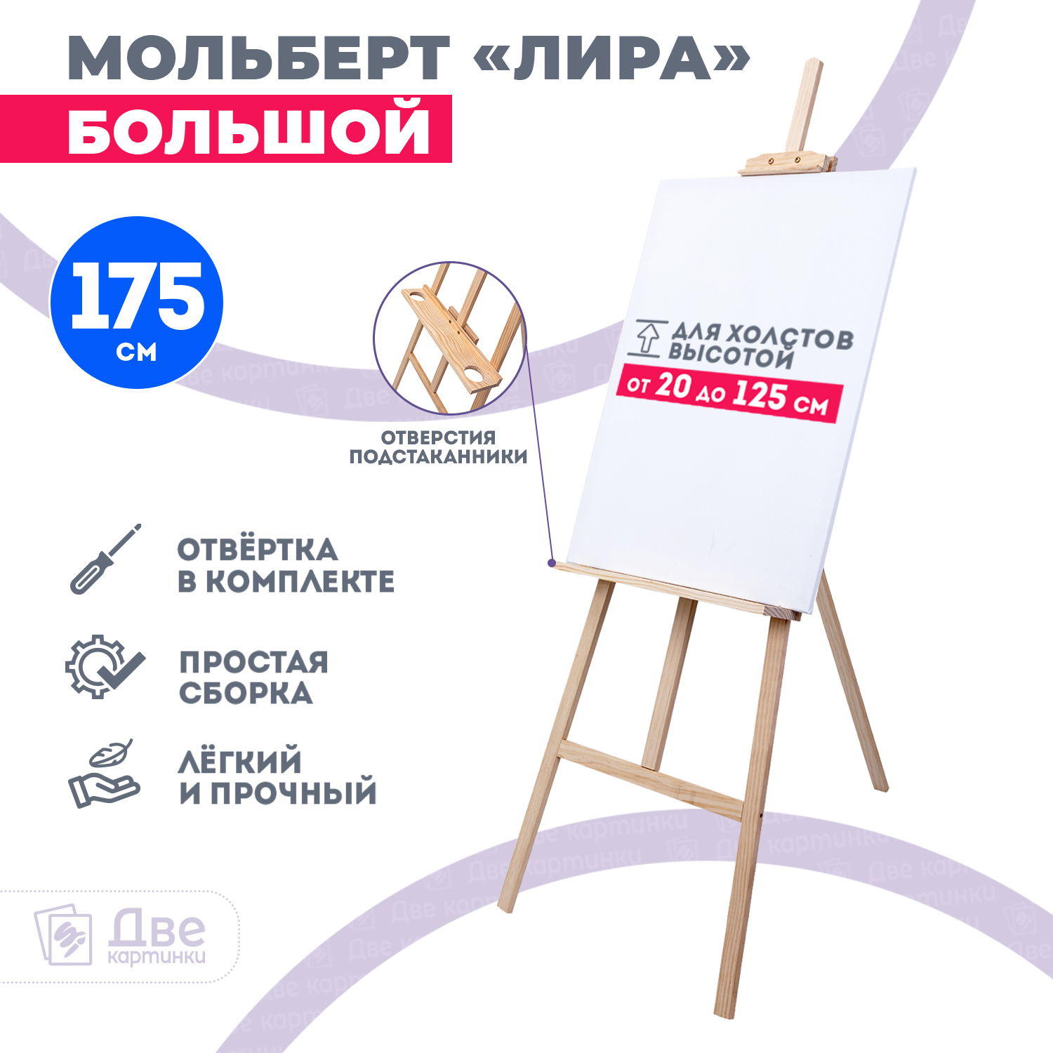 «Мольберт Две картинки лира с полочкой, 175 см»