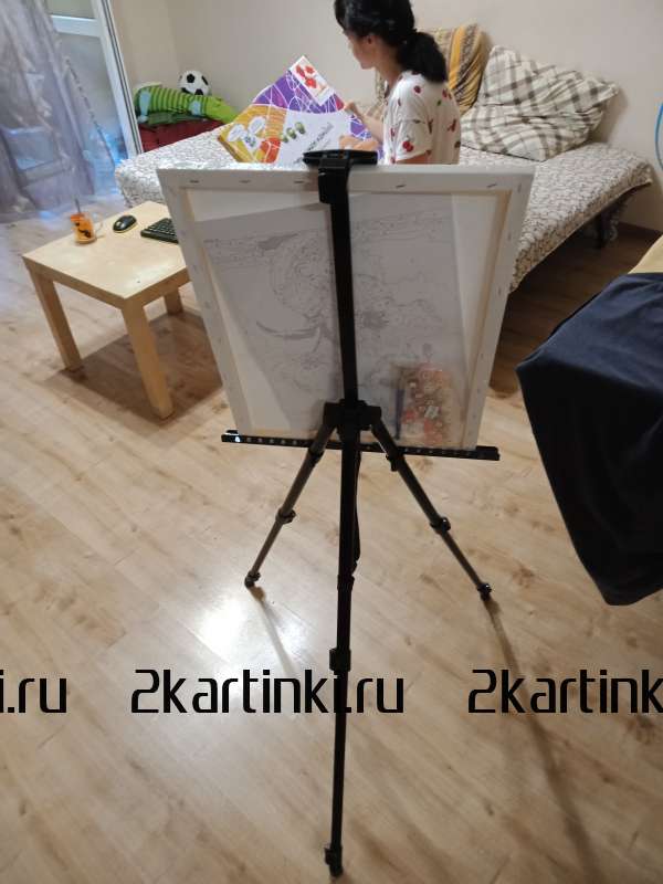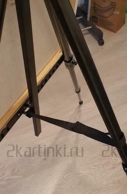Мольберт хороший, удобный и легкий. НО ножки на паркетном полу разъезжаются. Пришлось сразу же делать резиновые "набалдашники", что бы не скользил. Планка для установки подрамника немного "помята".