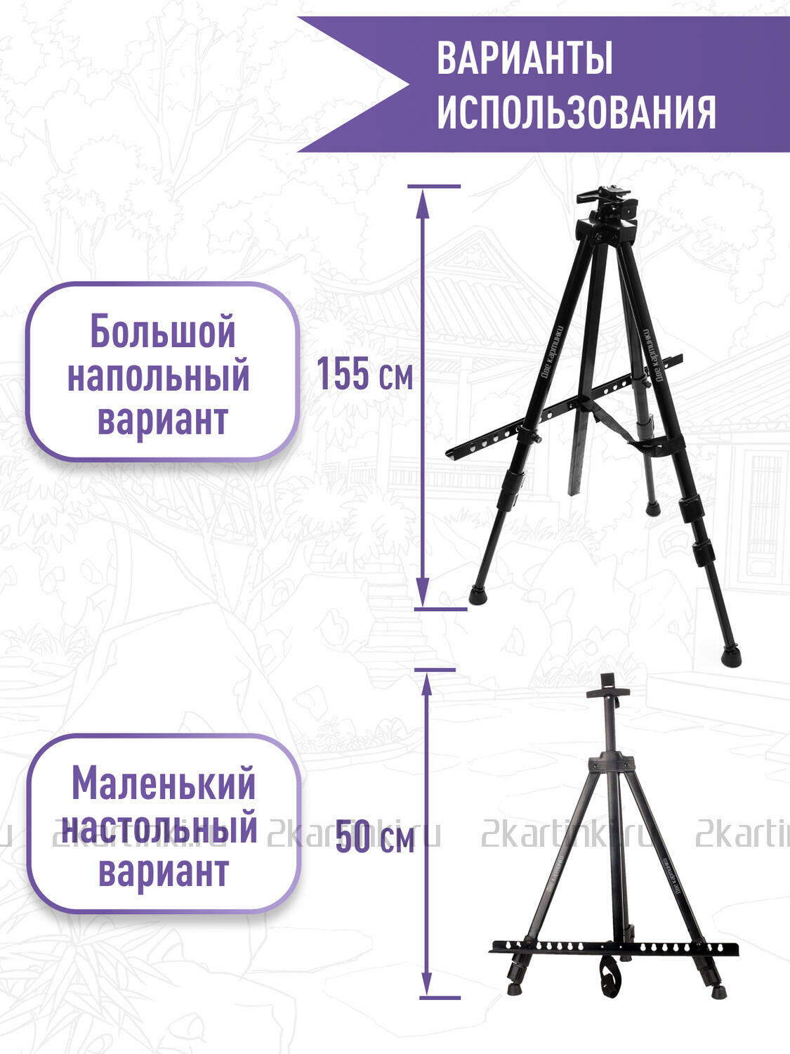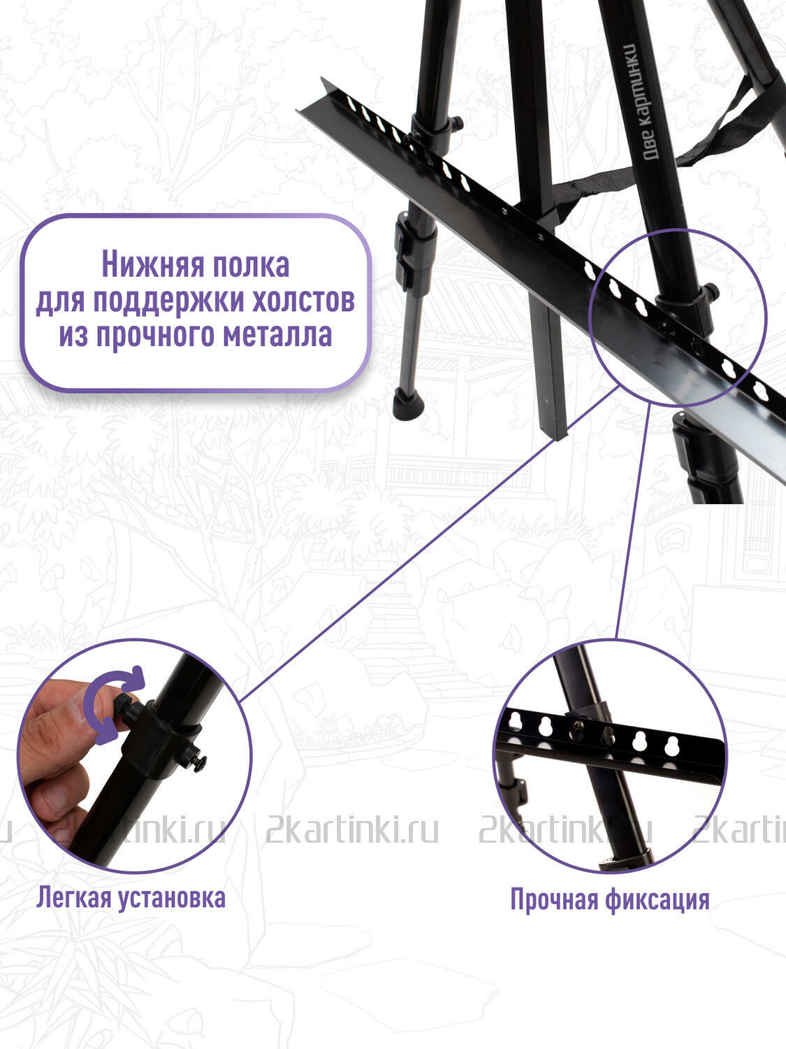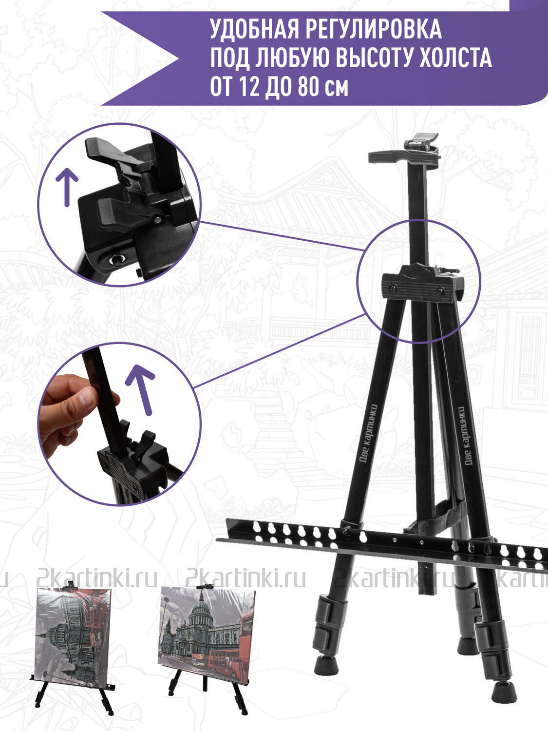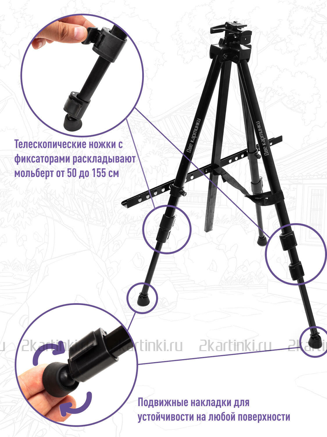 • Вид мольберта Тренога с регулировкой высоты