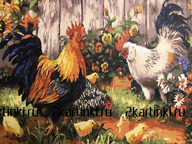 Картина по номерам «Петухи, курицы и цыплята на цветущем дворе» размером 40x50 см см. купить по выгодной цене 890 ₽ с доставкой по Москве и всей России.