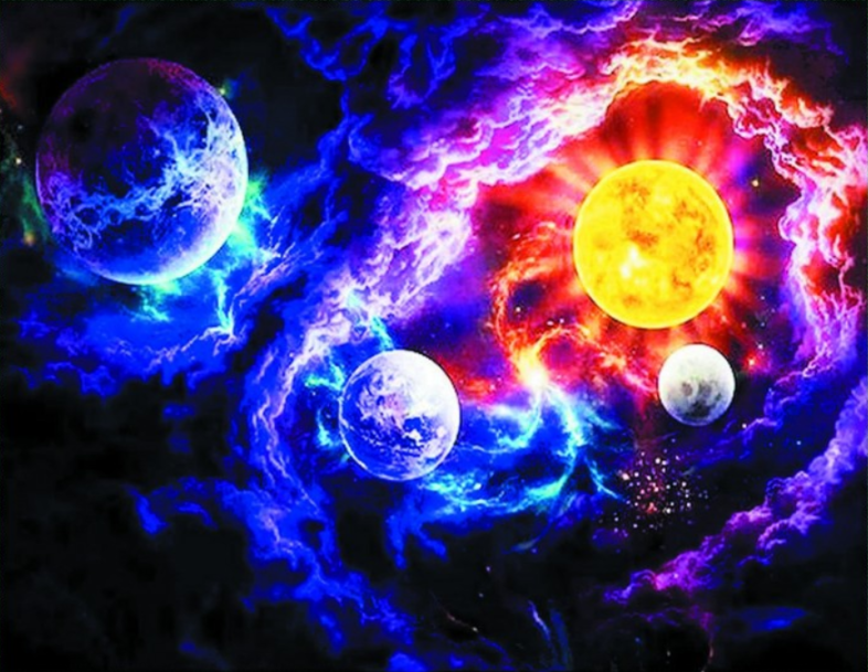 Алмазная вышивка «Солнце и планеты среди туч» 40x50 см